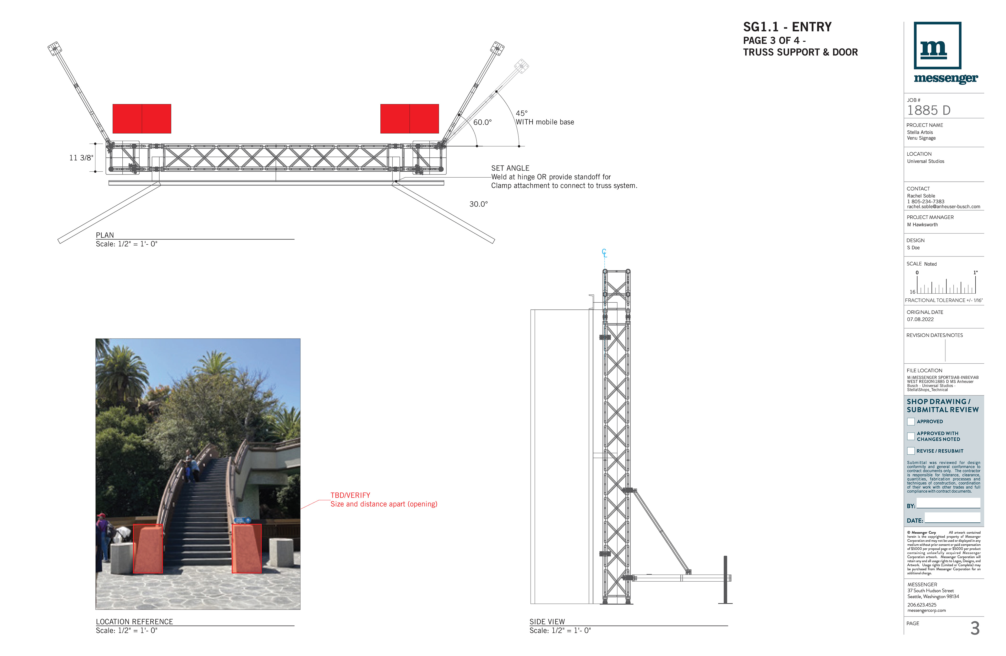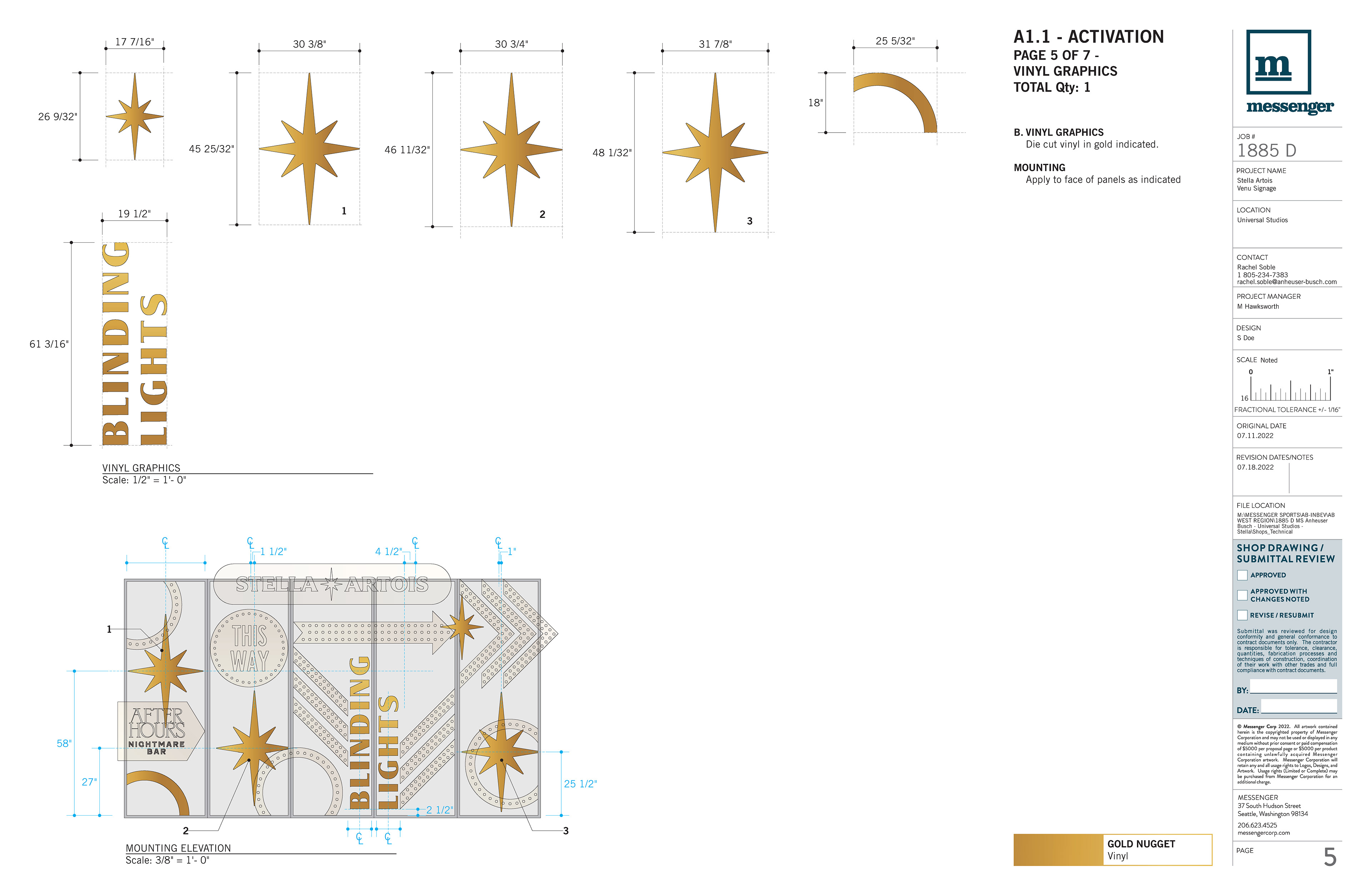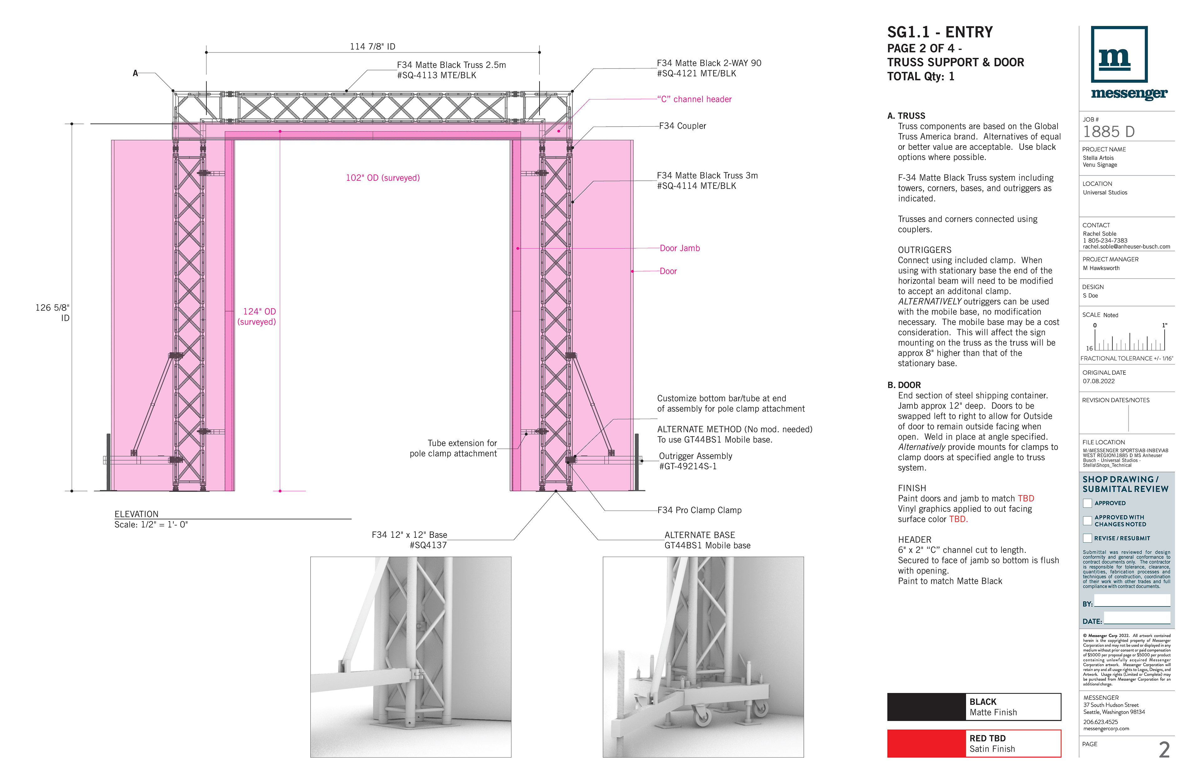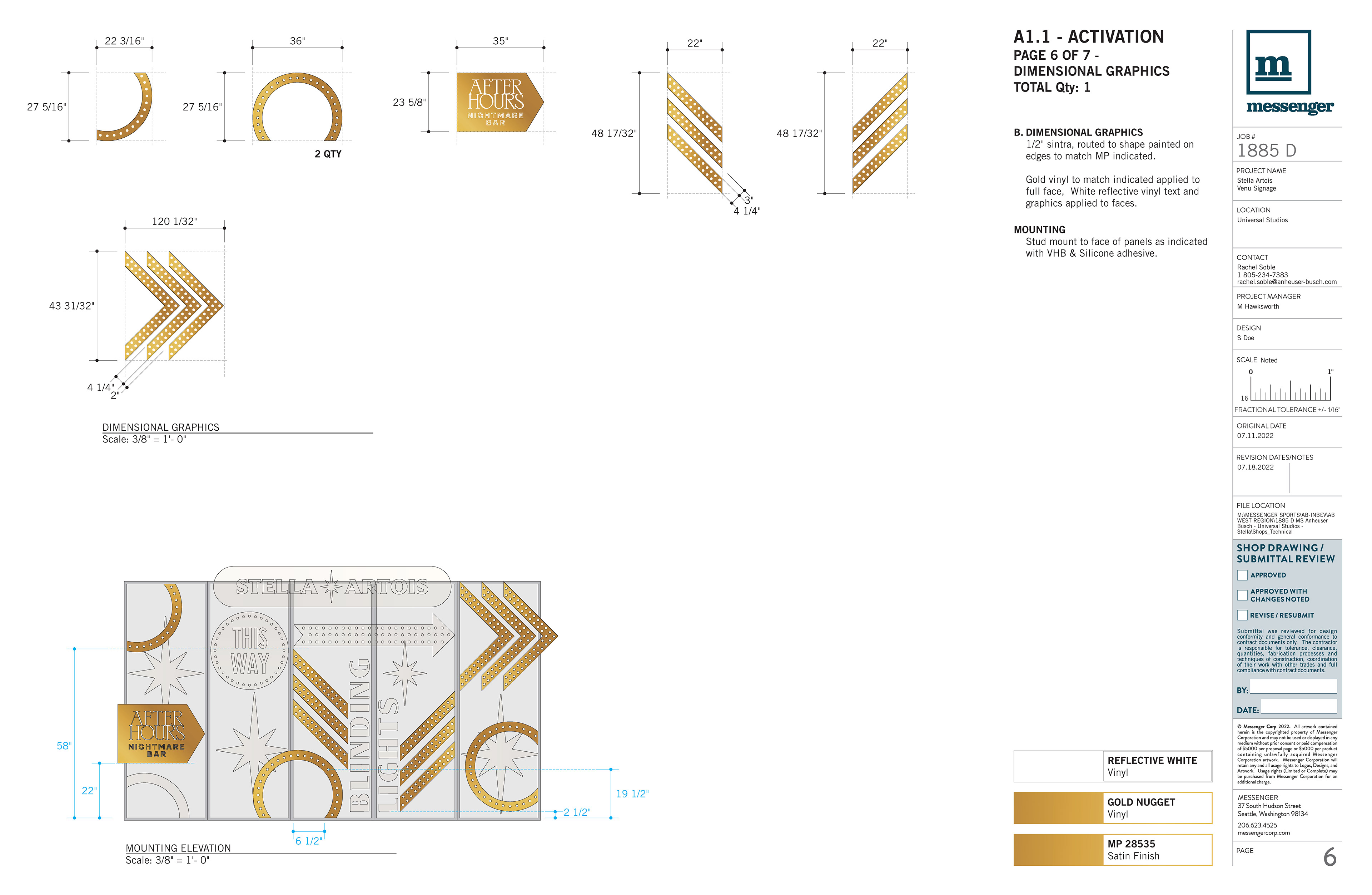 Direction of technical build design with fabrication specifications, including materials, attachment methods, and electrical.